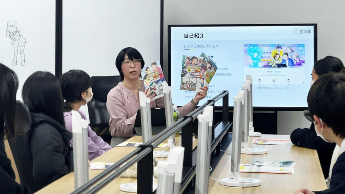 今回のイベントでは、絵を描くことや漫画・アニメが好きで、その様な仕事に興味がある学生たちに向けて、私の職業=広告漫画家についてお話しさせていただきました。