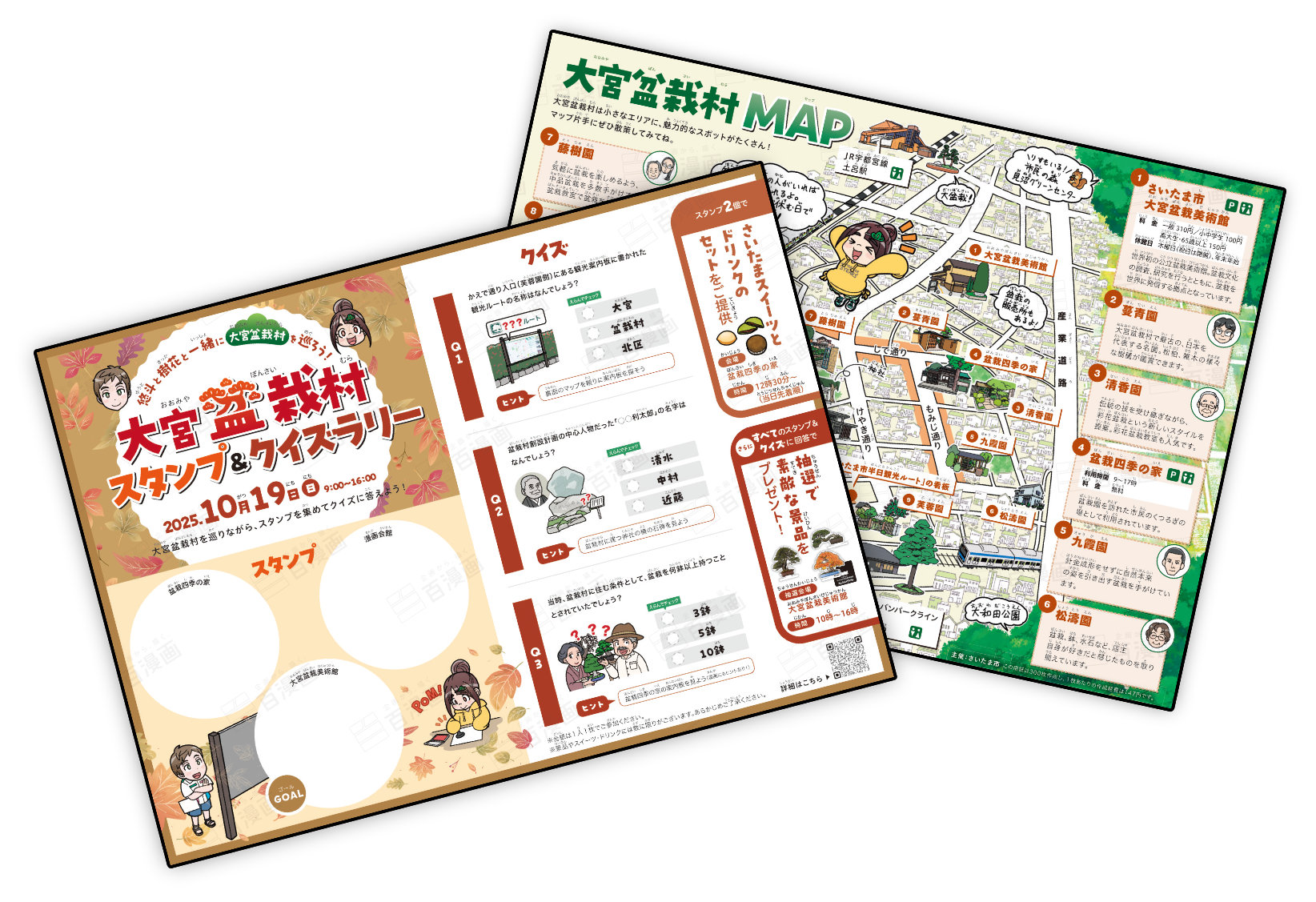 | 制作物詳細 | 『大宮盆栽村スタンプ&クイズラリー』台紙 A4/フルカラー両面 |